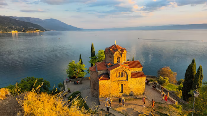 Prima colazione. Partiremo per Tetovo dove visiteremo la sua incredibile moschea affrescata con vividi colori, e dipinta all’interno come all’esterno in ogni minimo spazio. Si dice che sia stato usato l’albume di 30.000 uova, per realizzare e proteggere questa sinfonia di colori di rara bellezza. Continuammo verso il sud per arrivare a Ocrida, che per le sue numerose chiese e palazzi storici è stata proclamata Patrimonio della Umanità. Affacciata sul meraviglioso ed omonimo lago dalle acque cristalline questa cittadina gode di un fascino unico. Pomeriggio dedicato alla visita di Ocrida, il suo teatro romano, e alcune delle belle chiese ortodosse. Visiteremo la chiesa di Santa Sofia. Ma l’attrazione principale è percorrere a piedi le sue antiche strade acciottolate. E come no, faremo l’emblematica foto della chiesetta di San Giovanni Kaneo con lo sfondo dello spettacolare lago circondato di montagne. Cena e pernottamento.